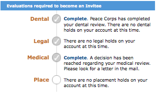 If anyone else is thinking about doing Peace Corps, be prepared that training actually starts as soon as you apply (Peace Corps is very upfront about this- and it’s true). We haven’t even left the U.S. and already our patience and flexibility have been tested multiple times. Our application was submitted sometime in late June of 2010. We had an interview at the beginning of August (which had to be followed up with a phone call because we ran overtime). In September, we got the surprise call that a placement opened up that matched both our job qualifications: in Africa, starting July 2011. Please decide in the next 24 hours if you want your spot held? Soon after saying yes, we received the Medical Report packet. I (Michelle) had my scheduled physical postponed twice in a row, ended up returning to the doctor’s about a dozen times because of missing signatures in all the necessary places and lab tests not being ordered all at once for some unknown reason. I thought I would have everything done by October easily but in reality, it took an additional month- not to mention the follow up medical paperwork I had to do in January once Peace Corps looked at my file. Jedd had a similar experience with the Dental portion, having to return multiple times to get the paperwork and dental work finally completed. I believe it was March when we officially received medical clearance. I feel like our patience muscles have been adequately flexed through the medical process, just one more step in preparation for life in the developing world.