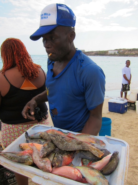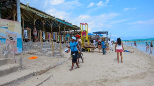 Yesterday we had a chance to explore the local beach with a couple of volunteers. The water is beautiful and a different shade of blue than I’m used to. I loved all the different restaurants and shops lining the beach, the colorful outfits, and the loud, bumping music (from a huge speaker system that would put anything back in the states to shame). My favorite thing of the day probably came from the onshore fisherman market (at least that’s what I’m calling it) where boat after boat would come to shore and sell to the local restaurants (and anyone else there) their fresh catch (which we learned came mostly from diving). It was awesome to see the different varieties of reef fish, conch, and spiny lobsters (which I learned sold for only $300 /lb, Jamaican. About $3.50 USD!!!)