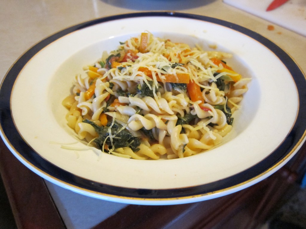 The first couple steps are the basic steps to make calaloo the way Jamaicans do (sort of) and you’ll see me use this later in posts to make other dishes. This alone without pasta can be a meal in itself. Overall, this meal is pretty healthy too (if you don’t use too much seasoning, oil, and cut out the cheese). Of course you can always add meat or other ingredients. Make it the way you think would taste best to you.