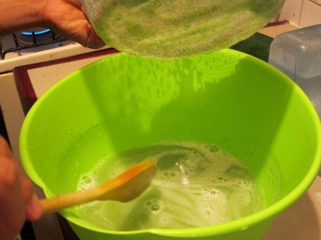 – Pour contents through strainer over bowl. Only a little bit of pulp will remain
