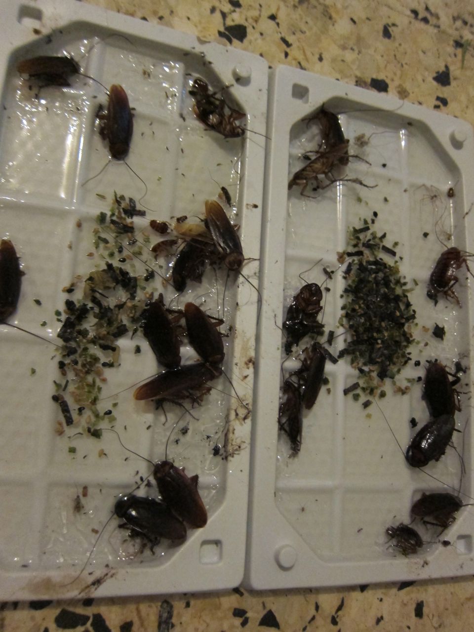 Roaches Jedd has been in constant battle with these ugly insects (as well as ants) in the kitchen. It will be a relief to be able to leave a dirty dish out once in a while.